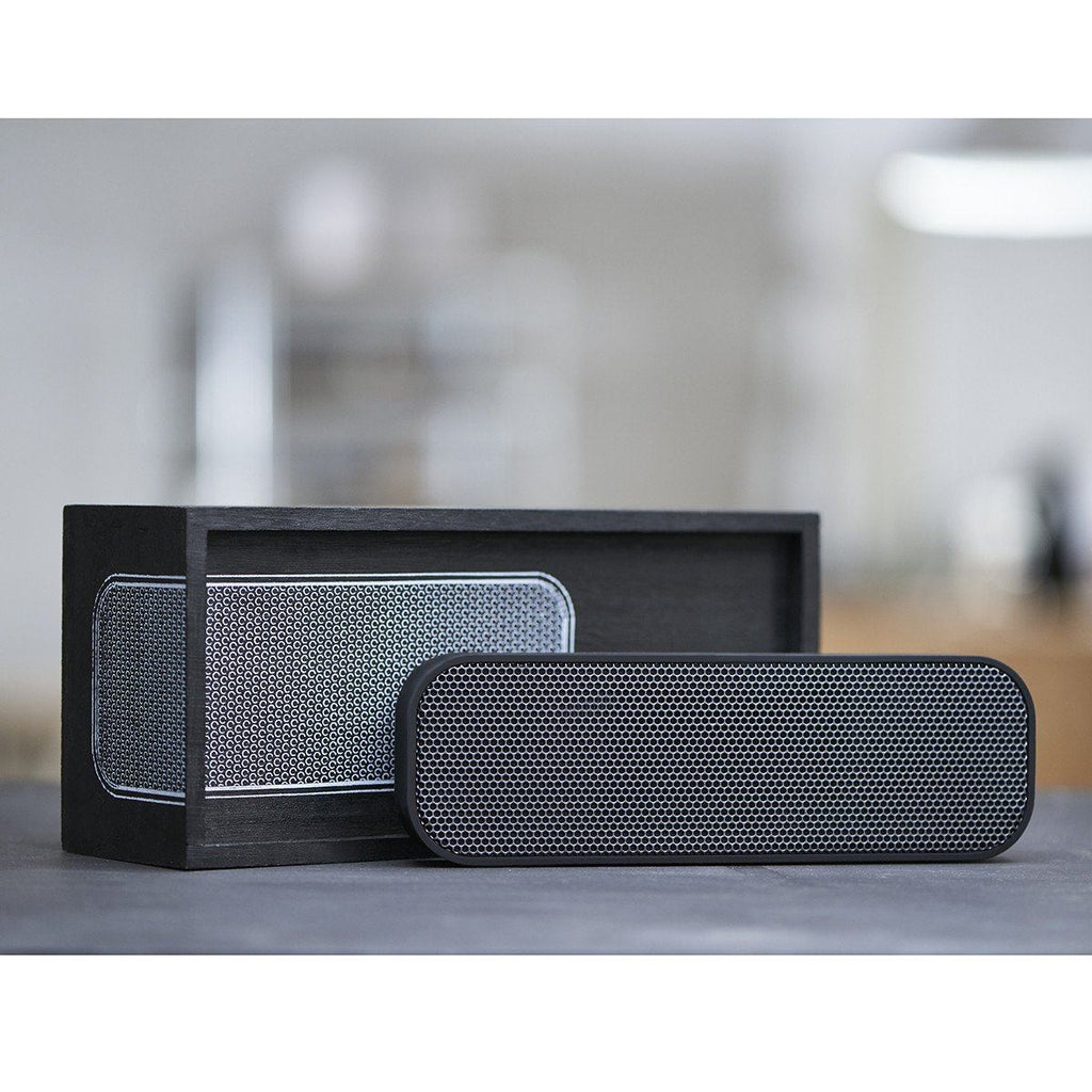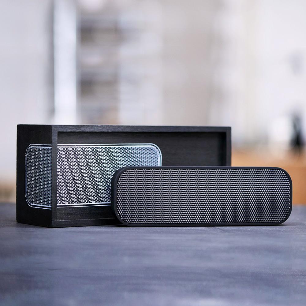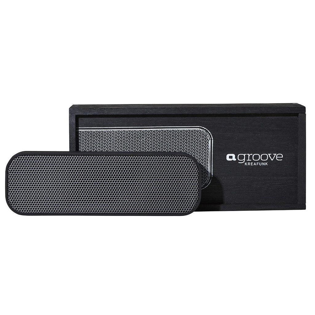 aGroove portable wireless speaker from Kreafunk is stylish, high-quality, beautiful sound and sassy personality all fused in one. Delightfully soft to the touch with rounded edges, aGroove Black Edition wireless speaker comes delivered in a beautiful black wooden box.