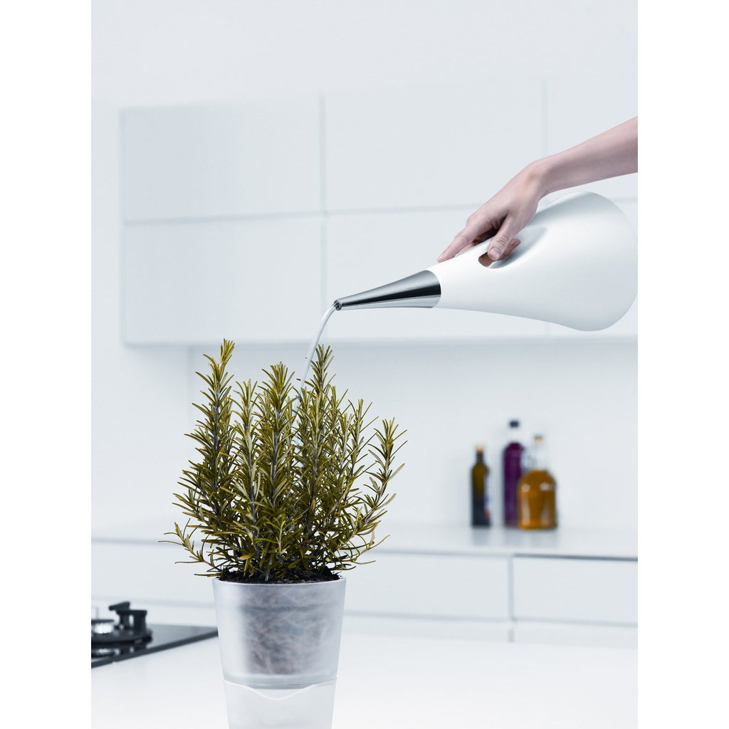 This minimalist watering can is designed for display and function, and its compact design makes it perfect for small spaces. The watering can pointed spout facilitates watering even small pots, and produces an even stream of water. Simply remove the spout to refill. Keep inside when not in use.