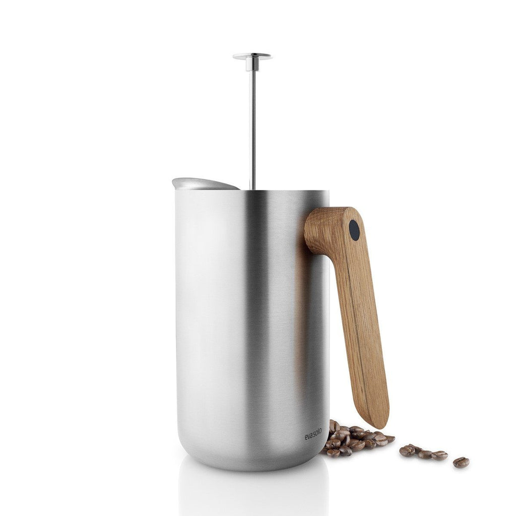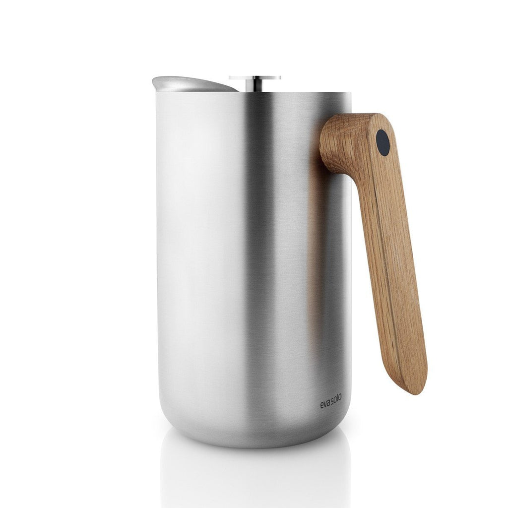 A minimalist design idiom and a functional mindset. This is the essence of Scandinavian design, and the source of inspiration for the Nordic kitchen range. The kitchenware range is the perfect match for Nordic cuisine. This also applies to the elegant Nordic kitchen thermo cafetière in stainless steel with an oak handle. The cafetière keeps coffee hot for longer because it also functions as a vacuum jug. The unique oak handle with its rounded edges provides a secure grip when serving, while the stainless steel pouring spout is completely drip-free.